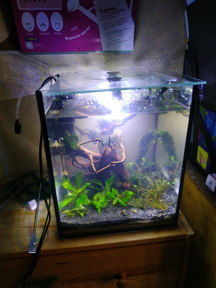 В начале апреля, когда появилась лишняя денежка я решила, что неплохо было бы запустить кубик, который я хотела изначально, да и в ближайших магазинах такие аквариумы наконец начали появляться.