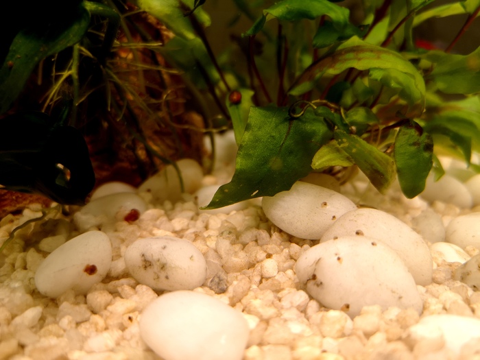 В аквариуме в основном доминирует мох 2 видов рождественский и яванский. И так по не ногу обычной растючки. На фото видно