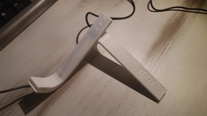 Напечатан на 3D принтере. Питание по USB. Светодиоды с алиэкспрессовского светильничка в виде флешки.
