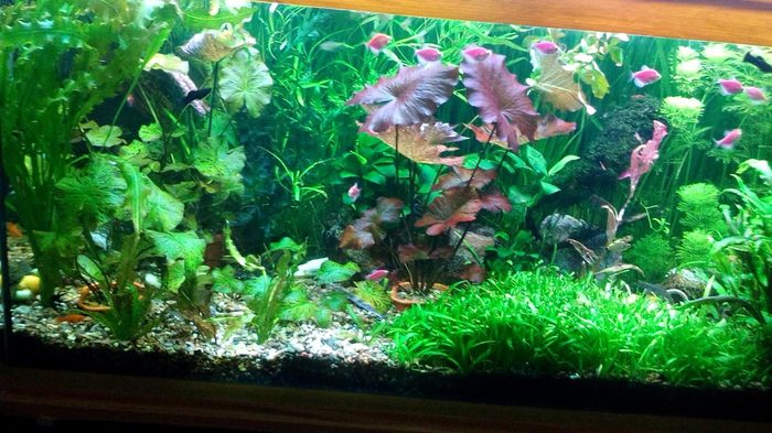 Общий слой грунта у передней стенки 6см, у задней 10см. Из растений планируются на старте мхи и элодея. А там посмотрим. Может вы посоветуете, что с таким грунтом приживется.