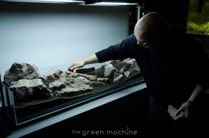 На грунт выставляем камни и создаем хардскейп. Некоторые акваскейперы рекомендуют выкладывать хардскейп на грунт, другие наоборот - это не сильно влияет на что-то.