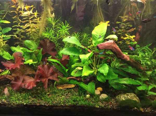 Далее, подозрения пали на улиток, но тут уж я просто не мог представить как они могли её сожрать, при том что улитки всегда либо на стенках либо на грунте, а рыбки (кроме сомиков) к ним не подплывают.