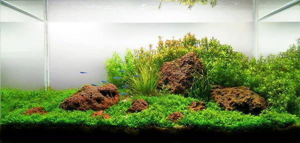 Хемиантус "Куба" образует низкий плотный ковер, и отлично подходит для высадки на передний план аквариума.
