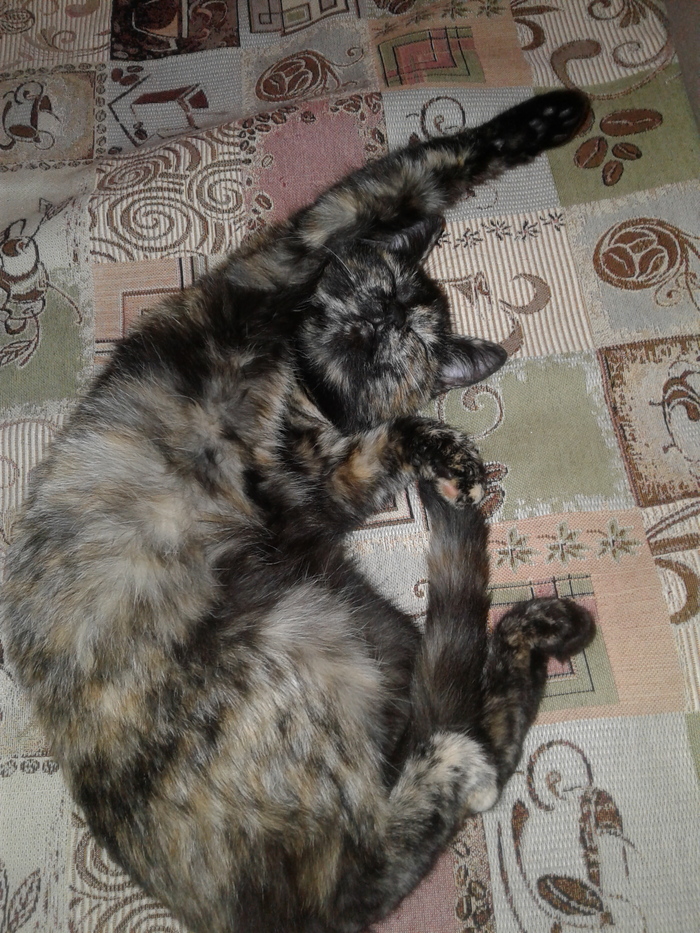 Третья наша кошка - приблудная. Обычная дворянка. Кличку ей дали Тютя (Матютя). Будучи подростком, была принесена домой детьми. Да так и осталась, ибо красивая!