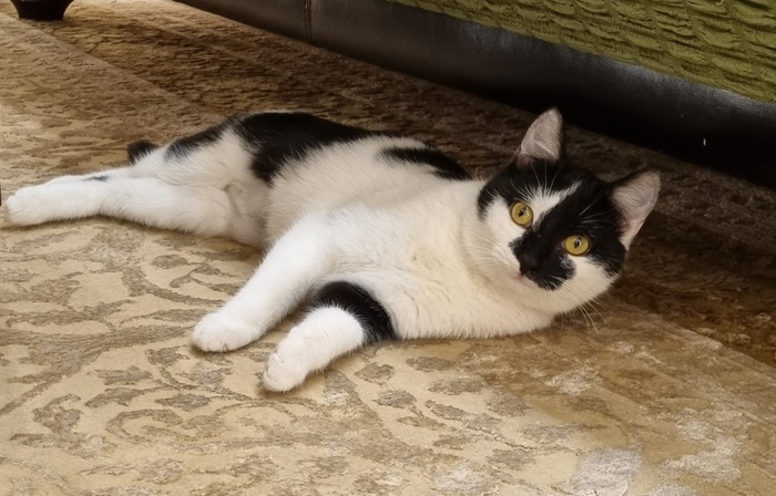 Пандочка, кошечка-мурчалка, подобрана с улицы, где ее гоняли собаки и подростки.