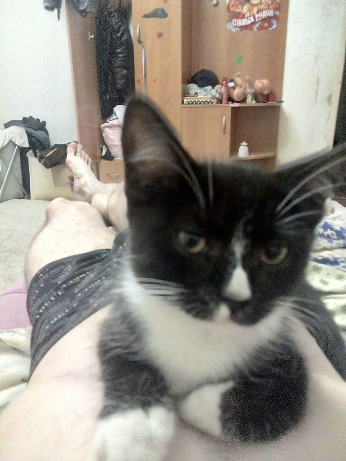 Котенок опять подходит и опять просит мясо