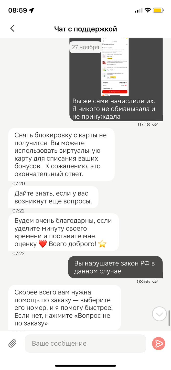 Одним словом, цирк. Я уже не надеюсь на решение вопроса в мою сторону, жалобы в Центробанк и Роспотребнадзор составлены, жду ответа этой помойки и с чистой совестью иду закрывать все продукты, которые успел наоткрывать за не один год пользования их продукцией. Я ещё не упомянул, что за последние 2 года раз 10(не преувеличиваю) обращался в техподдержку, так как мне постоянно подключали платные услуги, и каждый раз они стыдливо через несколько попыток отменяли списание(привет услуге альфа-чек, до сих пор понятия не имею, что это за деньгососка). Цель поста - просто привлечь внимание к бардаку в этой помойной конторе и предостеречь пользоваться их продукцией. Всем спасибо.