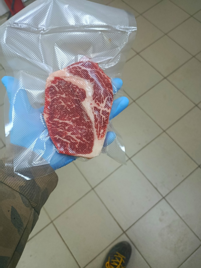 - choice и только он (или надпись choice на упаковке, или характерный цвет этикетки, приложил фотографию). Никаких matured beef и фермерских бычков! Это не стейки в классическом понимании, это просто нарезное похожими кусками мясо обычных коров.