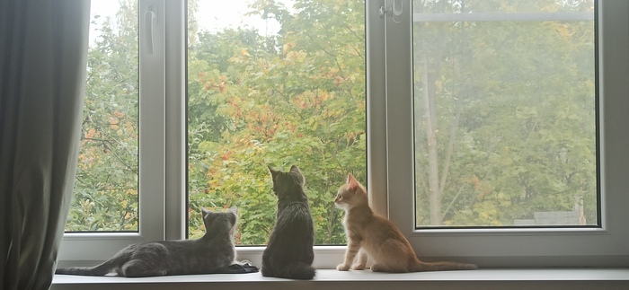 Лосось и Форель - наши рыжие рыбы. Оба из приюта. Лосось был домашним, Форель, скорее всего, нет. Лососю 15 лет, Форели 5 лет. Лосось сибирских кровей: мощный, крупный кот. Удар лапой оставляет синяки. Форелька помесь перса с шотландцем. Очень маленькая кошечка. Предпочитает избегать конфликтов. Ни разу не выпустила когти. Мурлычет как трактор)