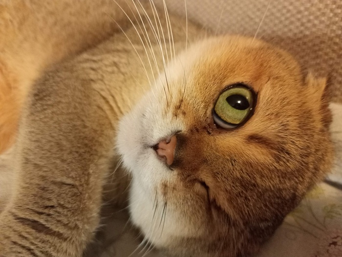Золотистый, вислоухий и одноглазый шотландец Плюша на полном серьёзе напоминает всем и каждому, что наступил март - самый кошачий месяц в году.
