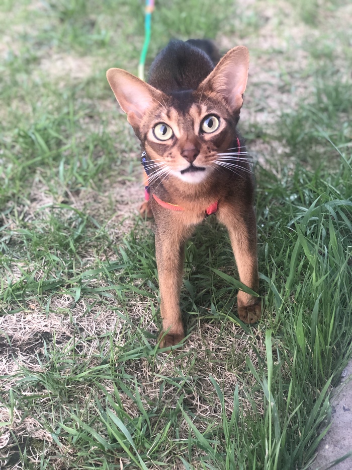 Взяли его у волонтёров. Такой типичный кот – уронить всё вокруг, утром бегит, орат. Считает себя королевской особой и поэтому в руки не идёт, только иногда разрешает себя погладить.