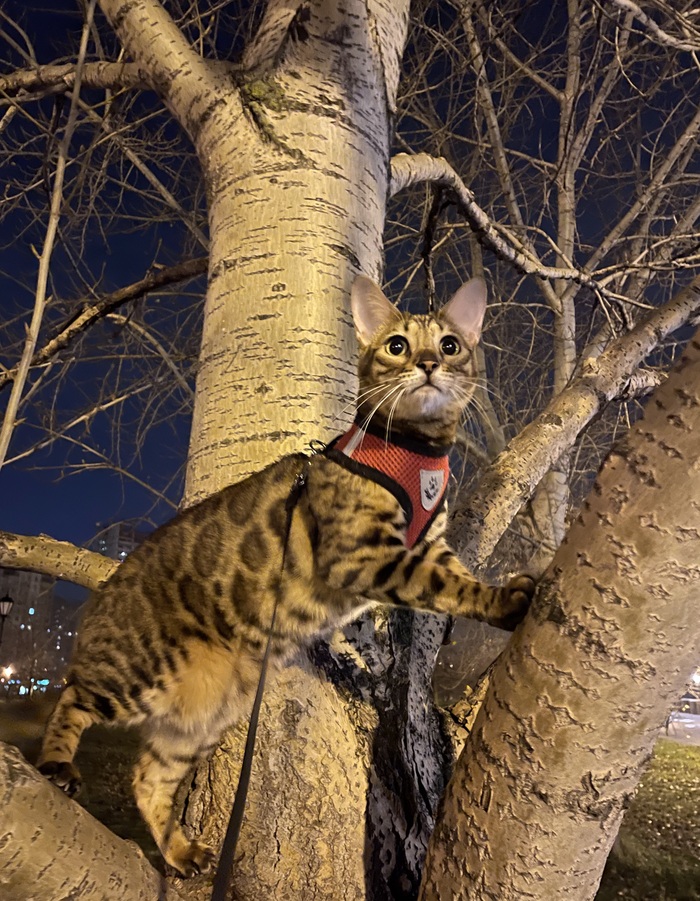 Бенгальская кошка "Стася". Имя придумал сын, это был его питомец, а сын был ее котенком. Кошку подобрали на улице. Искали хозяев по объявлениям и пабликам - не нашли. А через некоторое время животик начал расти - а чуть позже родились 4 замечательных котенка. Всех пристроили моментально. Стасю стерилизовали и пошли дни за днями. А потом грянул ковид, сын переболел и через некоторое время у него началась сильнейшая аллергия на пыль и шерсть и кошку. А кто не знает - бенгалы очень аллергенные котейки! Так Стася попала ко мне (я в разводе, с сыном живем отдельно)! Живет у меня 3 года. Кошка очень сильно ориентированная на человека, всегда рядом, всегда контролирует. Умная, понимает слова, говоришь уйди - уходит. Очень разговорчивая, даже ОЧЕНЬ! Т. е. нервы у хозяина должны быть очень крепкие ибо мяучить с громкости "шепот" до громкости "взлет самолёта" это она запросто, минут на 20 зарядить - легко. Но кошка очень ласковая, не кусается, не царапается, животик погладить сама подставляет! В общем мне 39 и я счастлив, что у меня такой питомец. Я люблю её, а она меня, полное взаимопонимание!