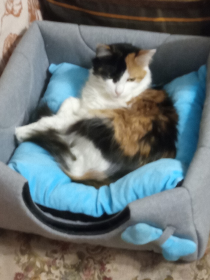 Найдена буквально за день-другой до собственной гибели. Мороз -18, рынок, новогодние праздники, даже погреться негде. Не смогла пройти, забрала кусок костей и свалявшейся шерсти домой. У неё даже кожа не прощупывалась, как будто волоски прям к костям прикреплены были.