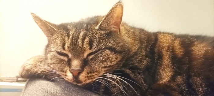 Не очень ласковый, но спасть приходит неизменно со мной на диван. Но когда мы с дочкой куда-то надолго уезжаем, он конечно первые дни после нашего возвращения от меня не отходит, урчит. Потом его отпускает, происходит отлив любви и он становится опять сильным и независимым.