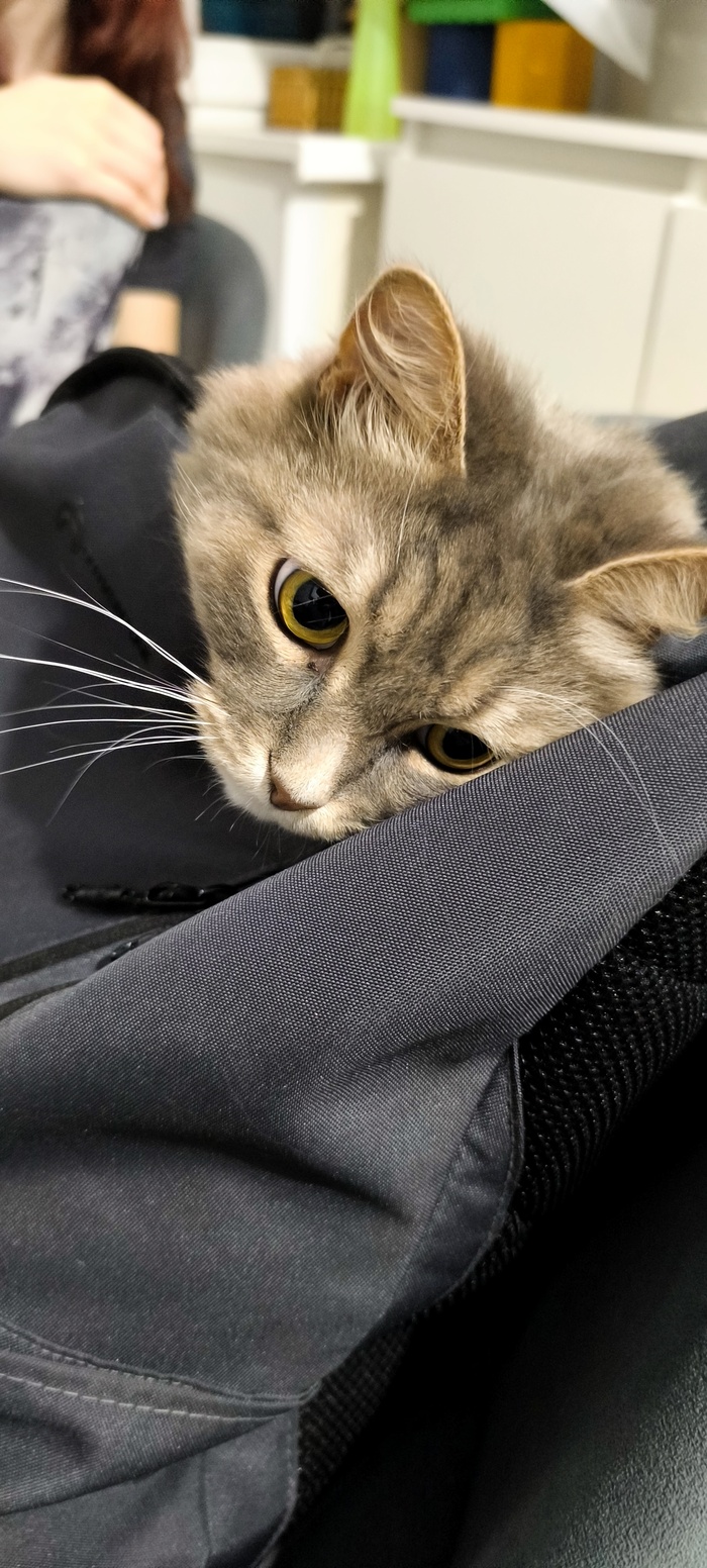 Пришел с рюкзаком инструментов и пока занимался делами, в рюкзак залез пушистый помощник.