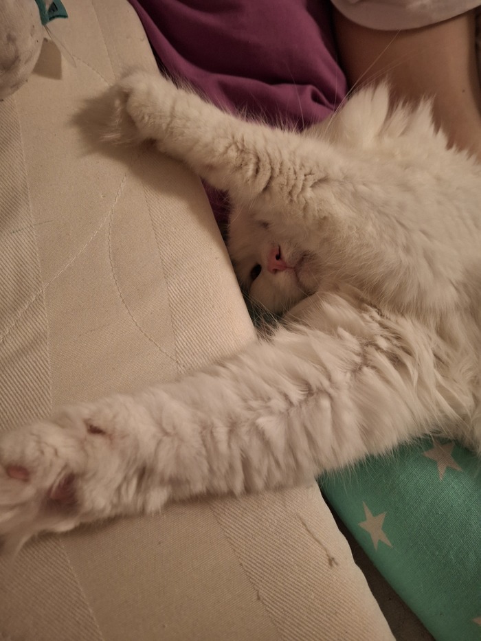 Молодой британский кот Майкл слегка кошмарит пожилого шотландского кота Саймона. Бегает за ним, порывается обнять и облизать. А Саймон не любит все эти ваши нежности, он мизанткот. К тому же претензии к англичанам у него наверняка в крови. Орёт, шипит и убегает.