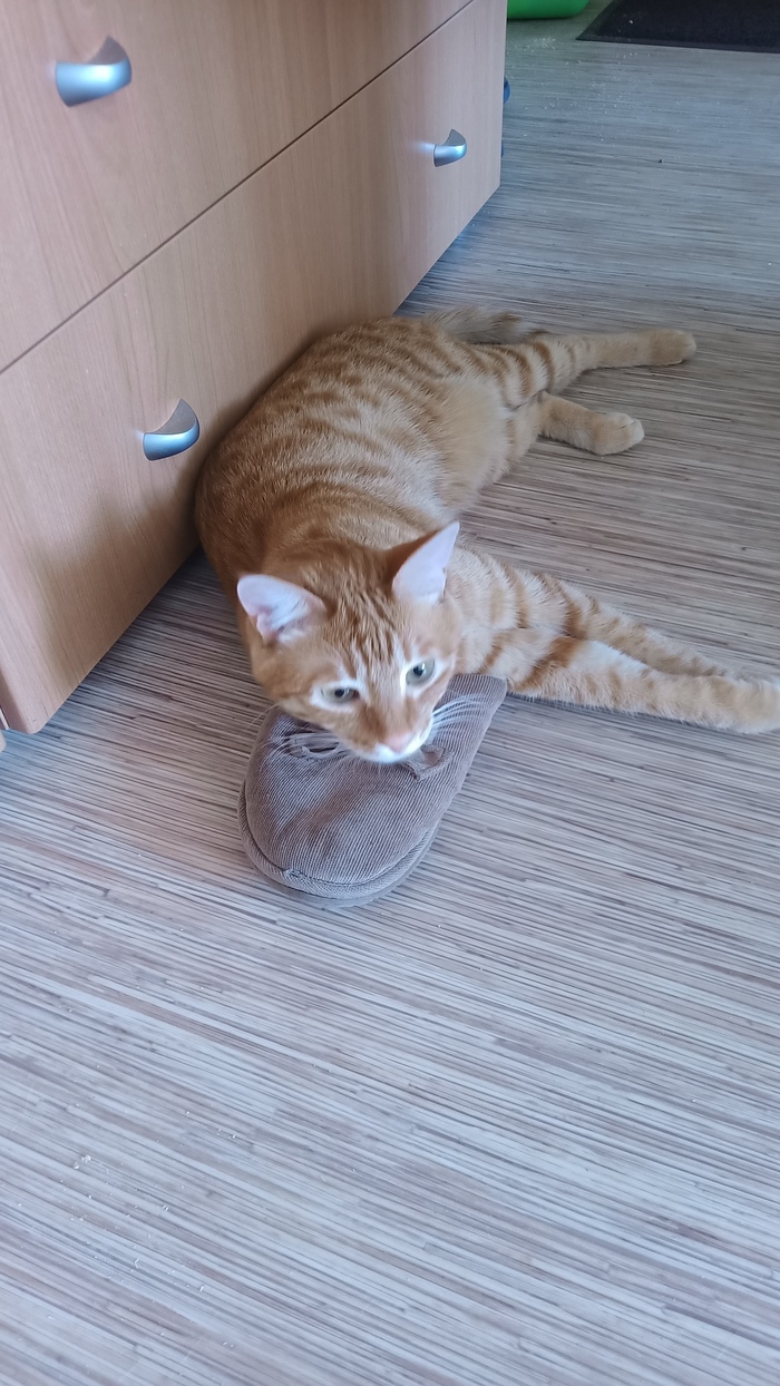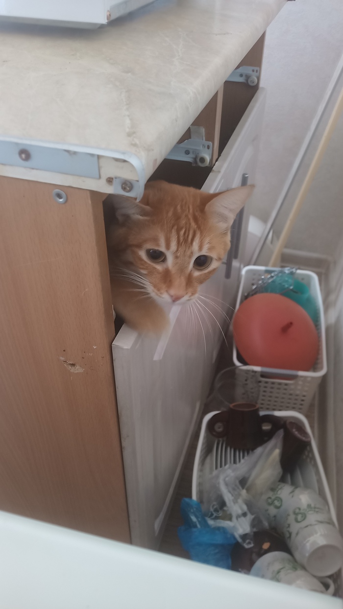 Котик пугливый и ооооочень прожорливый, но погладить можно, если лежит или кушает. В остальное время убегает. Сдружился с котом, с кошками шипит и махается лапами, но без кровопролития. На руках не сидит, вырывается и орет. Вообще, любит побухтеть😂