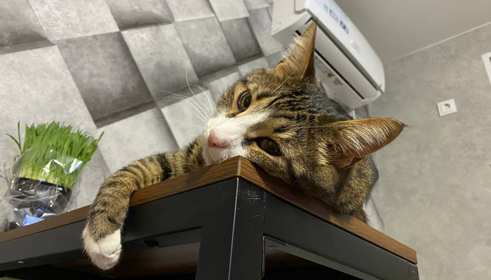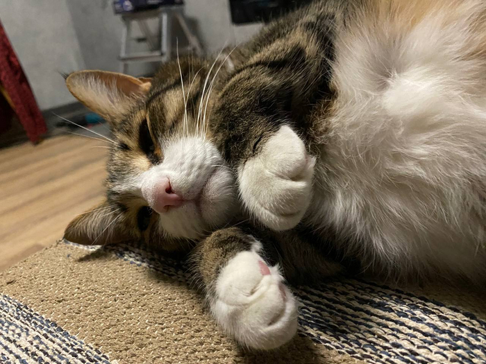Подобрал полгода назад, возле магнита отиралась как беспризорница, а оказалась самая воспитанная кошка из тех что знаю