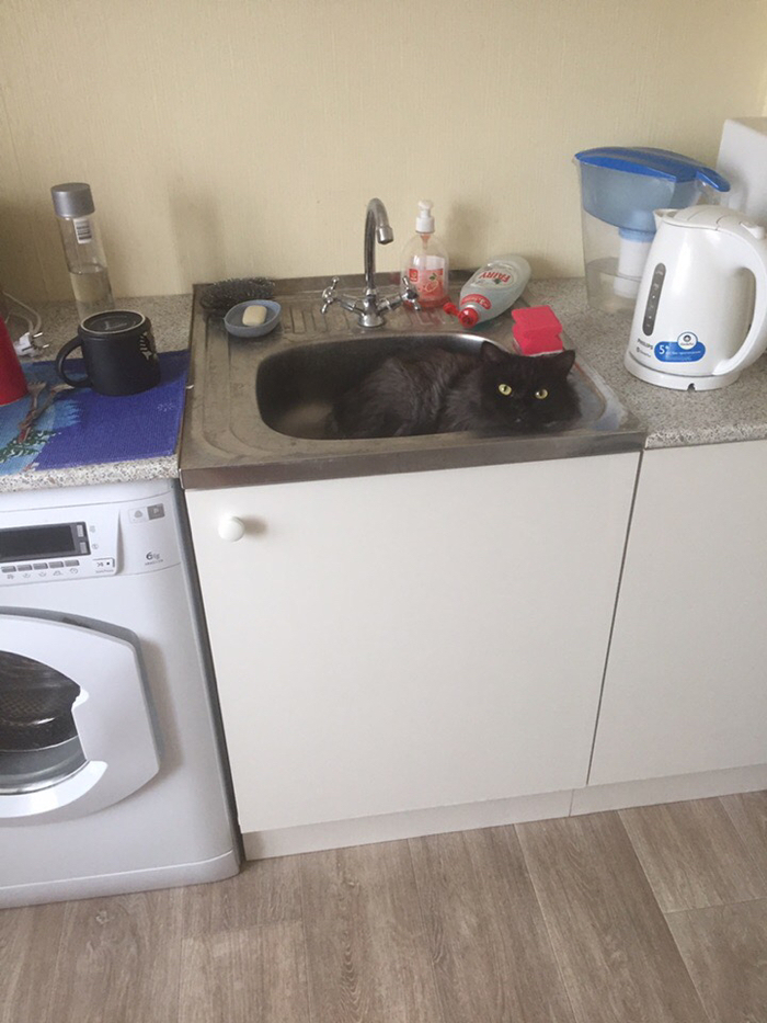 Залез сам. Не одобряем, но и не осуждаем (в раковине чисто)