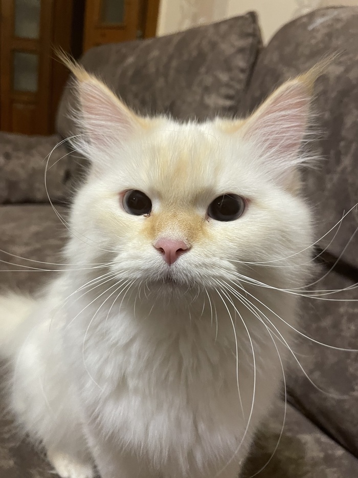 За пятнистую шкурку и характерное "му" вместо "мяу", был прозван мамой Каëвой.