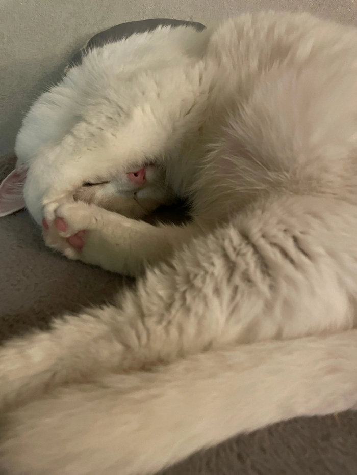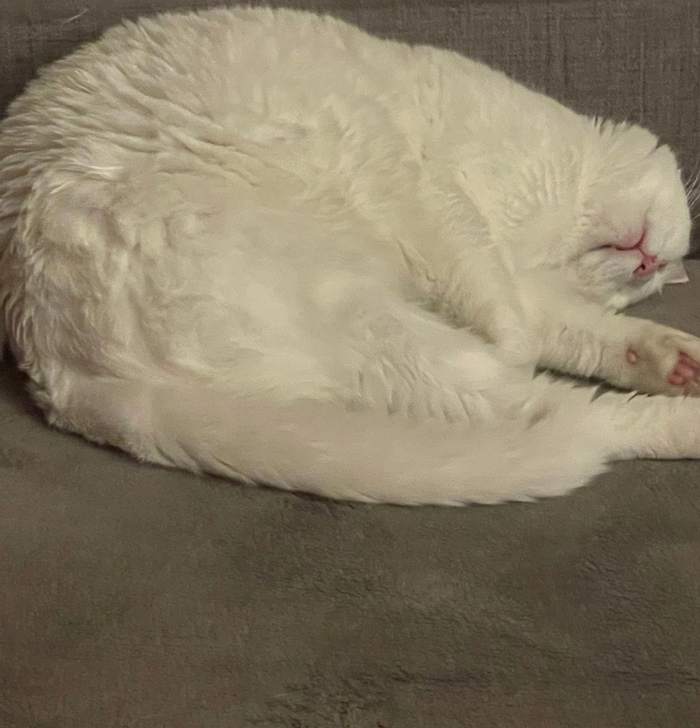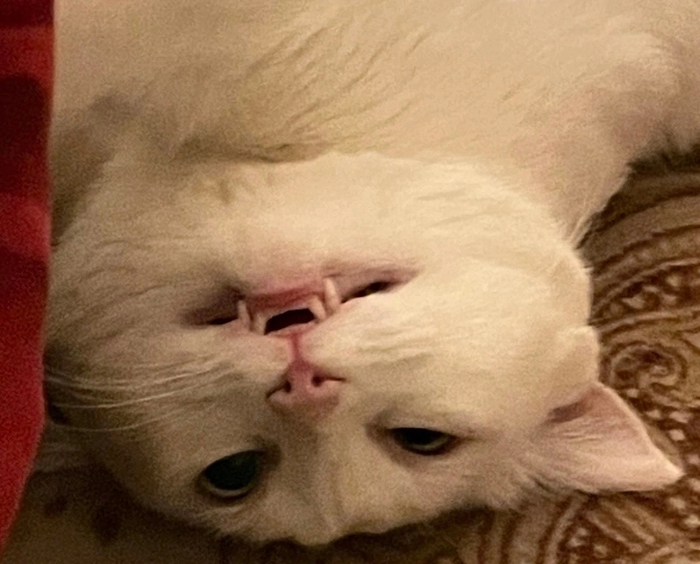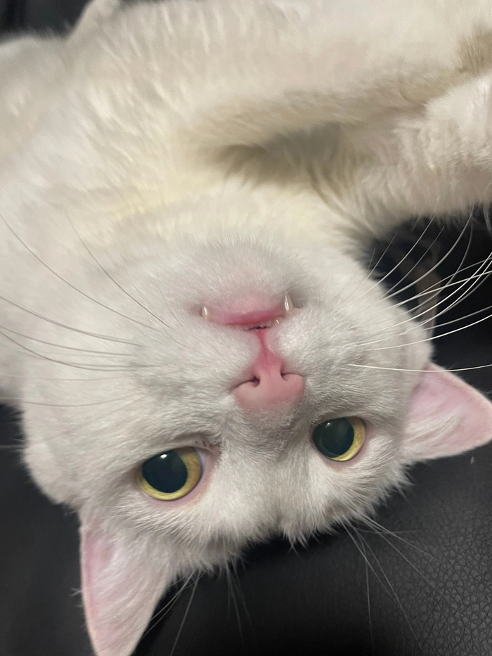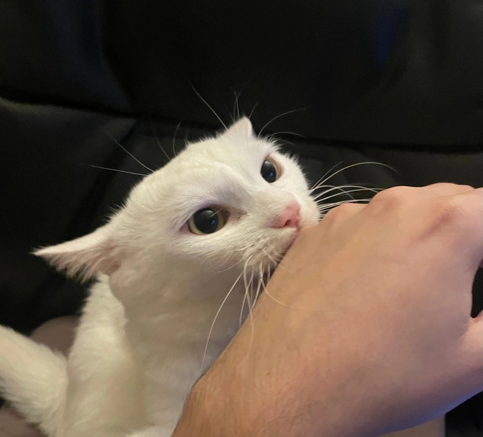 Второй по старшинству, кот Иннокентий, но своё имя он не знает, потому как он глухой. Его я нашла на дороге, ехала на автобусе и увидела, как маленький котёнок бегает между рядами машин, не выдержала, вернулась , забрала.
