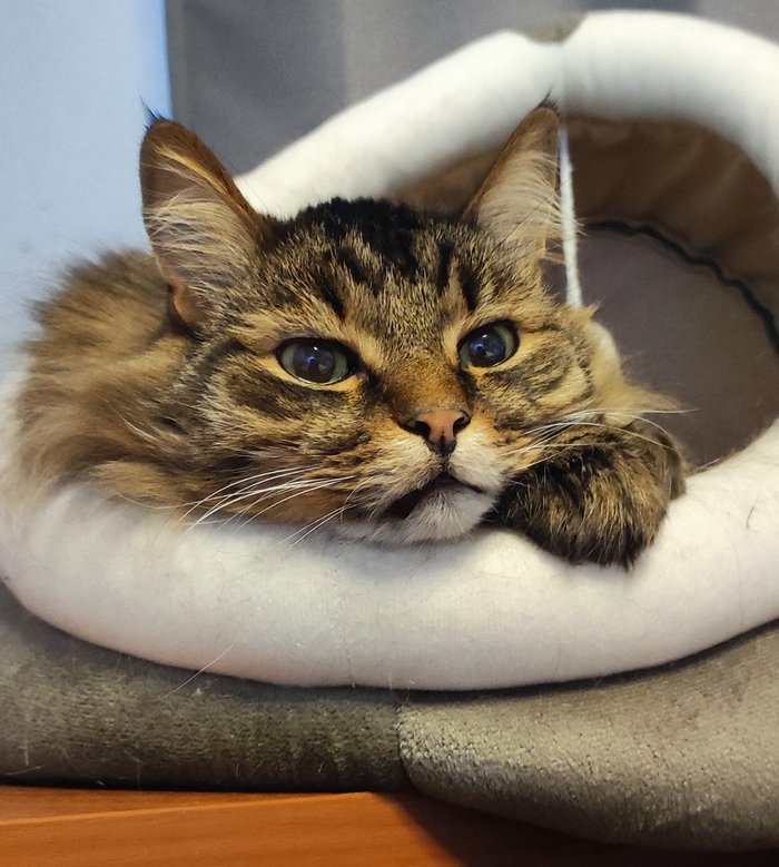 Историческая справка: был найден в ноябре 2023 с ужасной раной на спине. С тех пор Веня прошел долгий путь выздоровления на стационарной передержке, и теперь ему очень нужна заботливая и ответственная семья. Котик идеальный по характеру: контактный, дружелюбный, позволяет себя тискать, подставляя животик. Абсолютно деликатный компаньон: всегда рядом на диванчике или за рабочим столом с хозяином. Не портит мебель, туалет в лоточек, не пытается стащить еду, дает выспаться ночами.