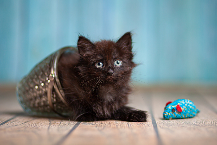 Маниш как и все котята активный игрун, но играет очень аккуратно, не снося всё на своём пути.
