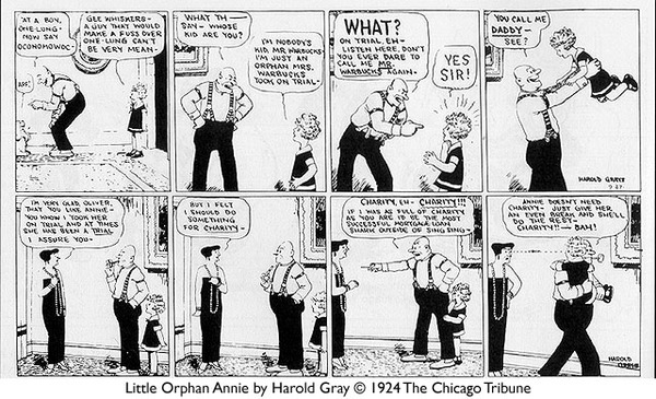 Это похоже на осознанное дизайнерское решение со стороны создателя комикса Гарольда Грея, так как в ранних стрипах(1924) эта деталь отсутствует: