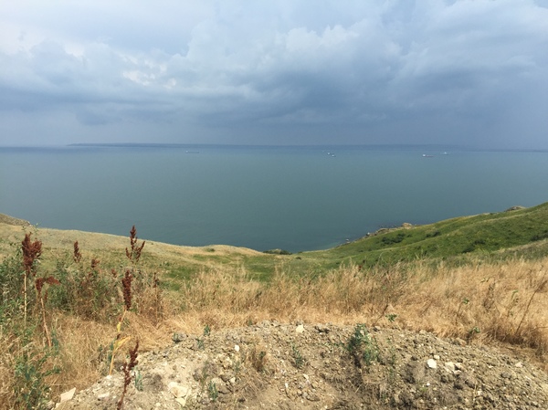 3. На третий пляж меня привела интуиция и мысль - "там же должно быть что-то интересное". А добраться до него можно на маршрутке (№65) от автовокзала, идущей в поселок Юркино. Главное, не пропустить свою остановку и выйти на повороте в пансионаты ещё до посёлка Осовины и идти сначала по дороге, а дальше по узким тропкам к пляжу примерно 2,5 км ( 45°25'11.5"N 36°36'46.0"E ).