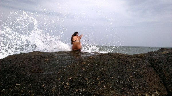 На берегу стоит множество пансионных домиков с постояльцами, но, если приехать до 12 вы увидите только пустынный пляж и волны, разбивающиеся о камни. Самое приятное — это усесться на камень побольше и встречать море в свои объятья.