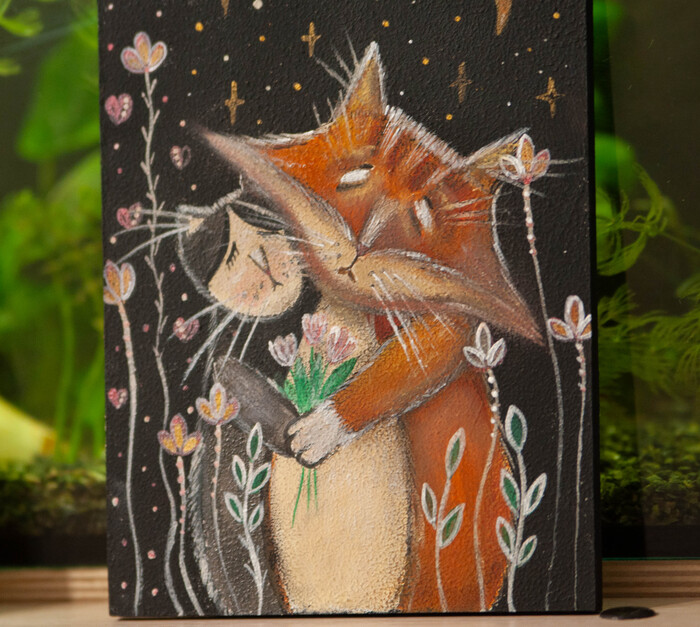 Роспись смешанная техника акрил и художественная пастель. Покрытие матовый лак. Размеры 13.5×18.