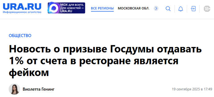 В Сети расходится новость о новой инициативе от Госдумы — россиян якобы обяжут отдавать 1% от чека в ресторане или кафе. Сумма пойдет на поддержку участников СВО.