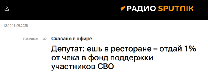 Правда ли, что россиян обяжут отдавать 1% от чека в ресторанах на поддержку СВО
