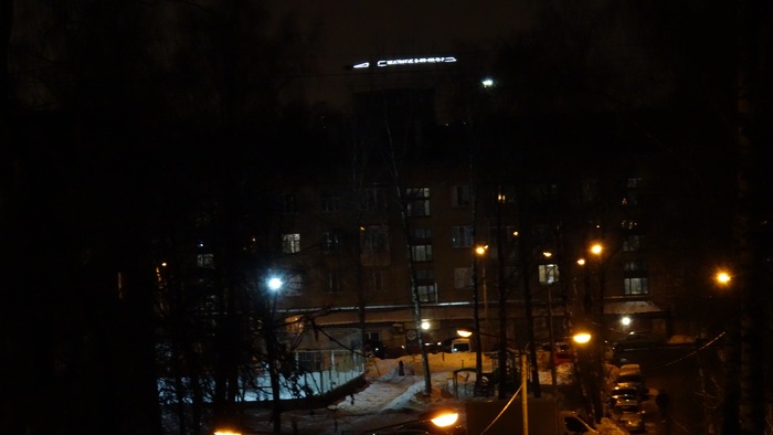 Краны повсюду, куда не взгляни, а этот в ночи висит как НЛО, строящийся ЖК рекламирует