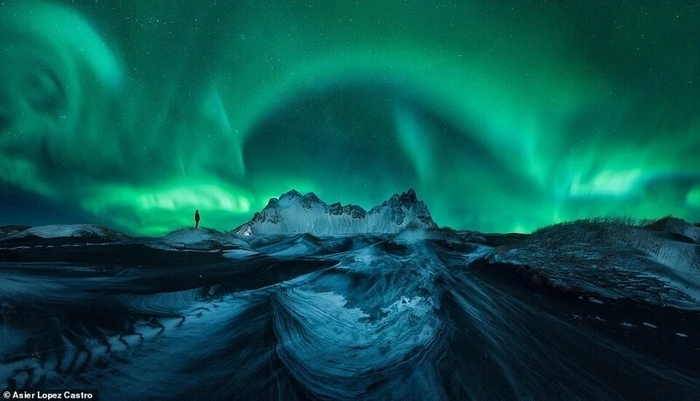 Северное сияние над горой Эйстрахорн в Восточных фьордах Исландии. Фотограф Pierpaolo Salvatore.