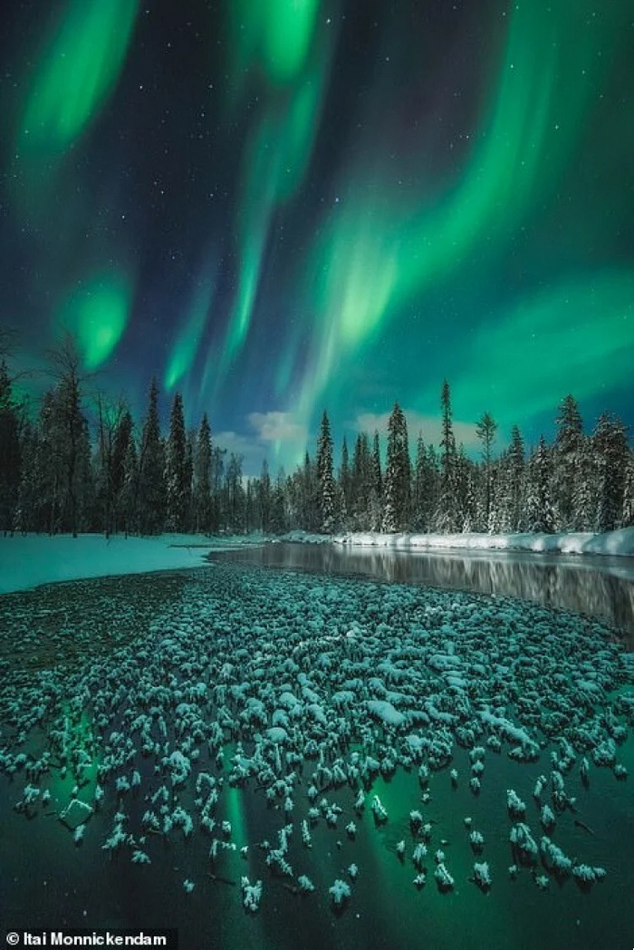 Северное сияние над Колари - регионом на севере Финляндии. Фотограф Itai Monnickendam.