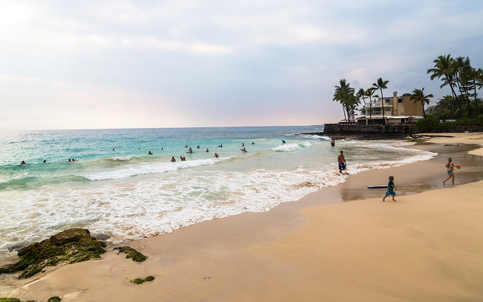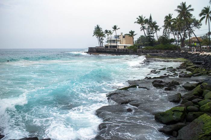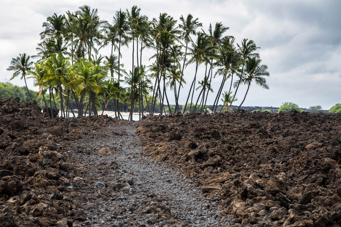 Это место называется Magic Sands Beach. Обычно это - песчаный пляж. Но шторма иногда его смывают. А через пару недель песчаный пляж восстанавливается сам по себе, волшебным образом.