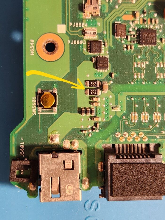 4. Но есть ещё подозрения на этот элемент (да простят меня все электронщики) похожий на дроссель, он звенит на прозвонку, хотя мб так и должно быть. С другой стороны, но рядом с теми же цепями.
