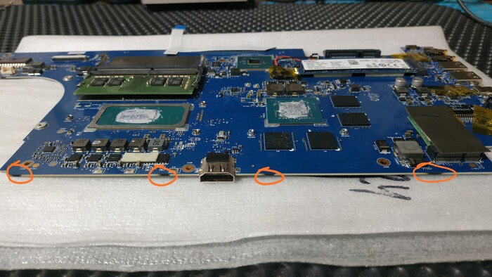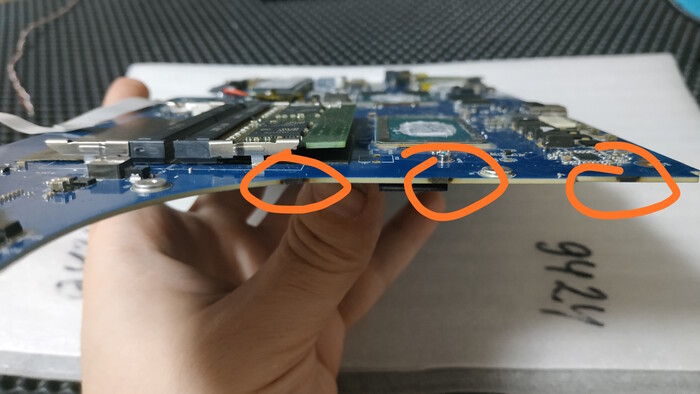 Принесли сегодня данный аппарат после самостоятельной замены термопасты, в процессе обслуживания бита от отвертки вывалилась и прогулялась по материнской плате, акб при этом был подключен. При визуальном осмотре обнаружил дырочку на u1, маркировка 81269 tzRV (NCP81269 ?), замеры сделал и выложил на фото, судя по ним,процессор вроде скорее жив, чем мертв, вызывают лишь вопросы по дросселям PL8 (85 Ом) и PL9 (46 Ом), также на дросселе с wifi модулем (85 Ом это сопротивление видеопамяти ?), документацию на данную платформу не нашел... также очень смущает наличие черных областей, похожих на межслойный прогар в торце платы, выделил области на фото, плата труп ? хотелось бы услышать мнение опытных людей, спасибо.