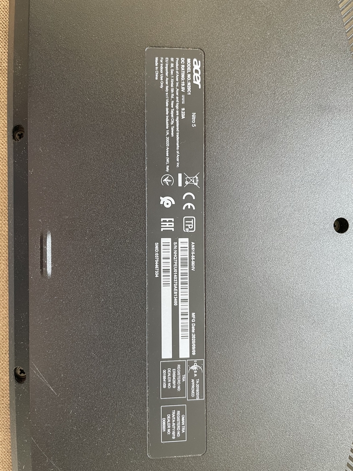 Дано - ноутбук сына Acer Nitro 5 model C20C1