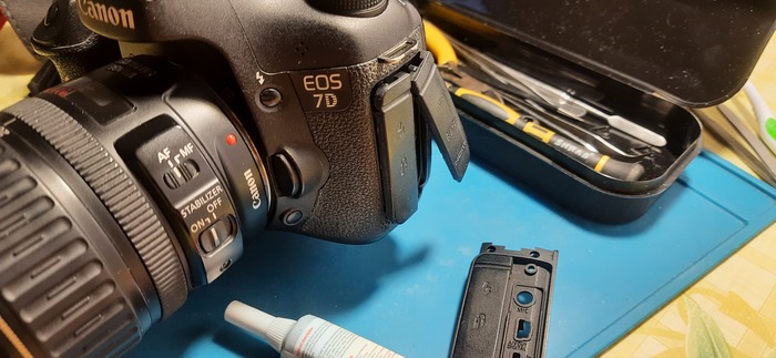 Все привет. Быстрая замена на фотике заглушек. У фотика сто тысяч кадров пробег. Чтобы заменить заглушку так как одна оторвана , понадобилось мне лично , клей , отвёртка крестовая , бензин или спирт и конечно 15 минут огромного позитива.