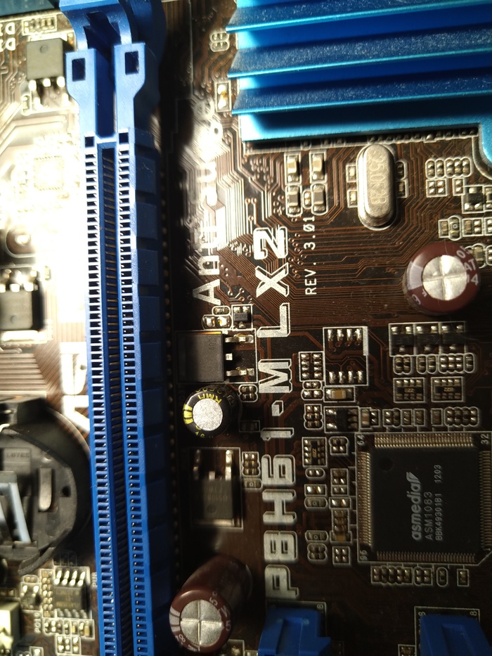 Материнская плата ASUS P8H61 M LX2 не запускается, при включении вентилятор блока питания начинает вращаться и тут же останавливается. Блок питания рабочий точно, другие компы на нем работают. Может кто знает что с ней случилось? Приложу фотки, на одной из них не могу понять был ли там транзистор или нет. Может его не хватает на запуск.