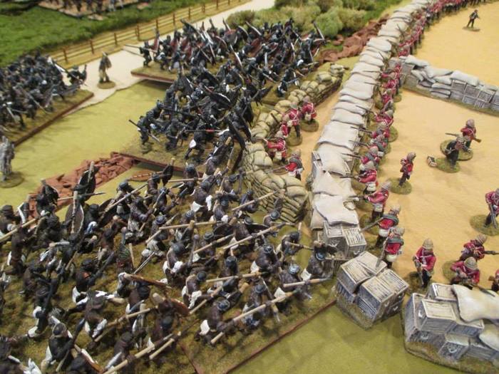 Колонна полковника Генри Ивлина Вуда атаковала зулусов у Хлобане, но неожиданно пришло 26000 и началась бойня. Потери Бритов составили 15 офицеров, 210 рядовых, сто из которых это африканцы. Ну... Та же история, хорошего отыгрыша не получится, самые лучшие сражения где у англичан есть минимальные укрытия.