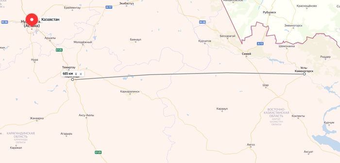 чем около 700 км, если брать хотя бы Караганду.