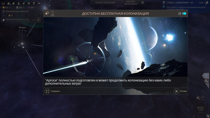 Приношу извинения, за предпоследний скриншот, просто защитник виндоувс опять достает, что его необходимо обновить, ему надо проверить компьютер и так далее. По поводу минорных рас, их имеет смысл выращивать хотя бы до 50 единиц, так они дают уникальные бонусы и уникальные законы.