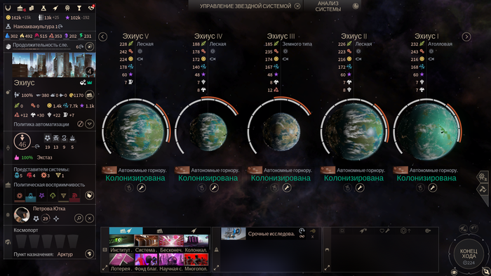 Кстати, штраф за чрезмерную колонизацию настолько мал, что во всех системах у меня было все равно максимальное счастье.