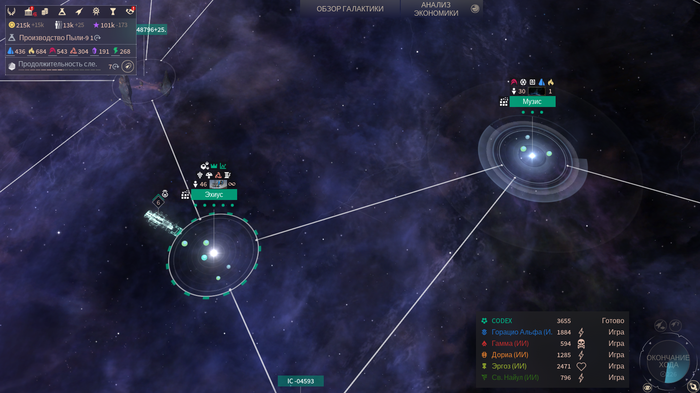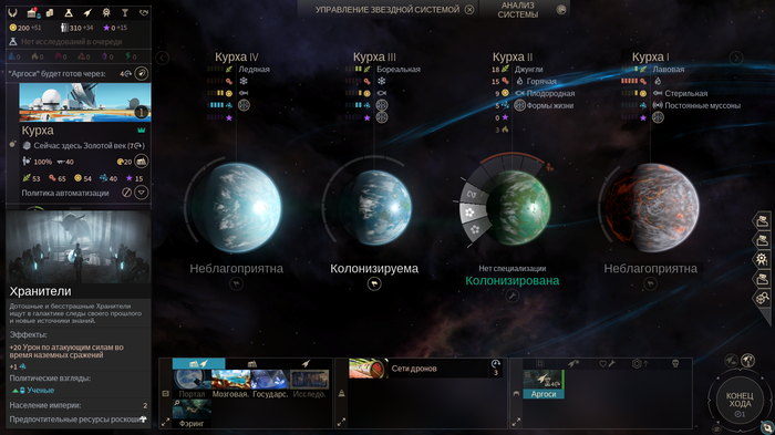 У меня очень много систем, по количеству населения и производство ресурсов, которые дают небольшой выхлоп, несмотря даже на то, что у расы Хранителей, минус к производству к еде.