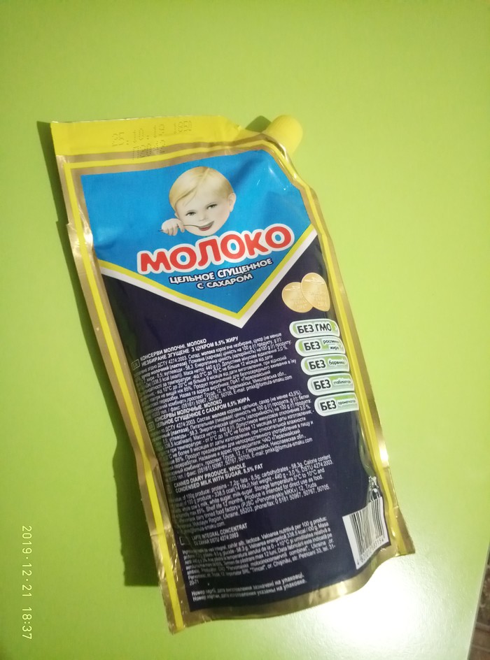 И так, что мы имеем. Пакет сгущённого молока- 1 шт