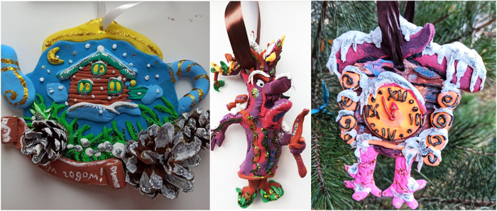 Найдите куда поставить или повесить шедевр. Новогодние пластилиновые украшения заполонили ёлку: