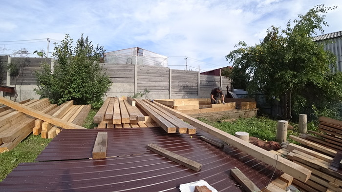 5.1 Перекрытие пола 1-го этажа. Обычно перекрытие делается следующим образом. Собирается достаточно массивная платформа, так как на нее будут ставиться заранее собранные стены.